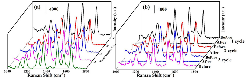 圖(b) 測試SERS chip的可重複性及再現性。